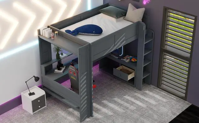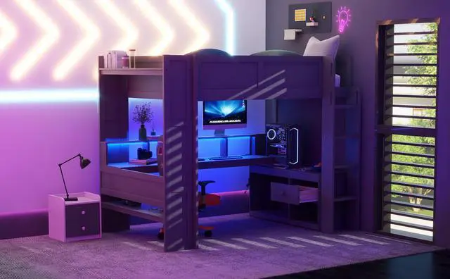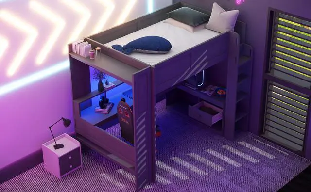 [Multifunctional Design and LED] In addition to the sleeping space, the built-in desk is a good helper for your study or leisure. The LED light strip on the inside of the storage shelves brings convenience to your night life. The light has four colors that you can adjust.
