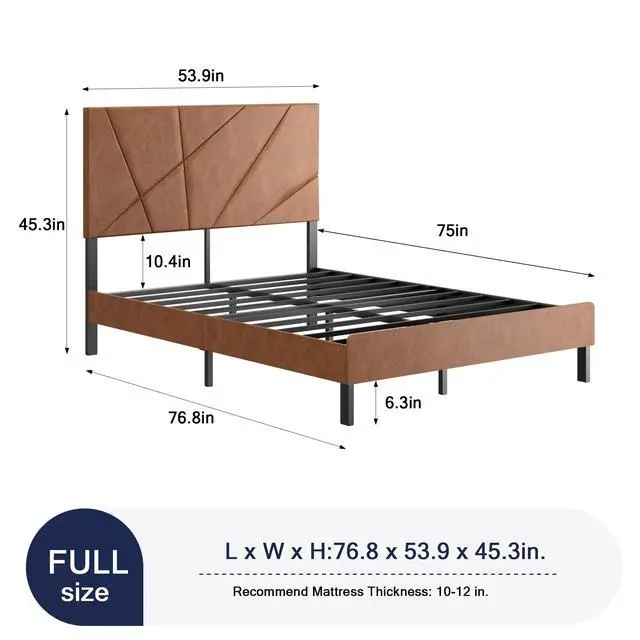Sturdy Structure & No Box Spring Required: Full size platform bed frame features a combination of an ultra-durable metal frame, ensuring even support and superior weight distribution. With a weight capacity of 800 lbs, it offers a strong sense of security and promotes restful sleep without the need for a box spring