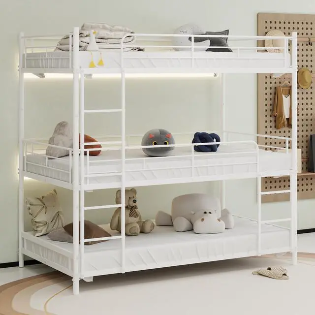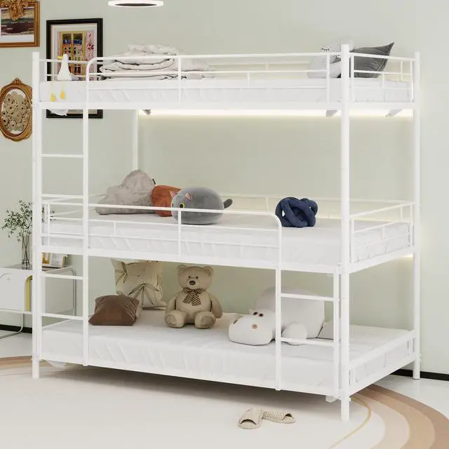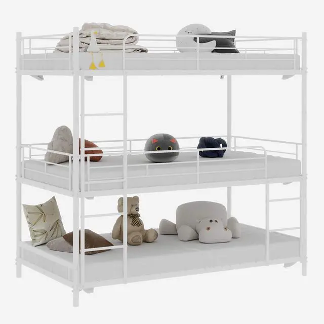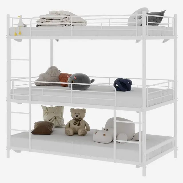 Sturdy construction: Our triple bunk bed frame is made of high-quality solid metal that provides unmatched durability and stability for long-term use, making it a great investment for any family. Whether you're a child or an adult, this triple bunk bed will give you peace of mind with its superior strength and reliability.