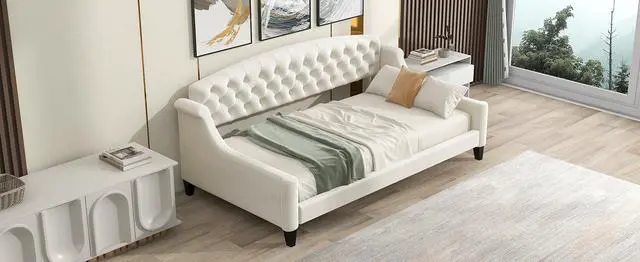 [Multifunctional Design] Our daybed combines functionality and style and matches a variety of home decor styles. This simple and stylish bed could suit for different decor style. It not only can be used as a twin size bed, but also used as extra seating or a sofa.