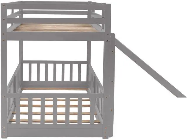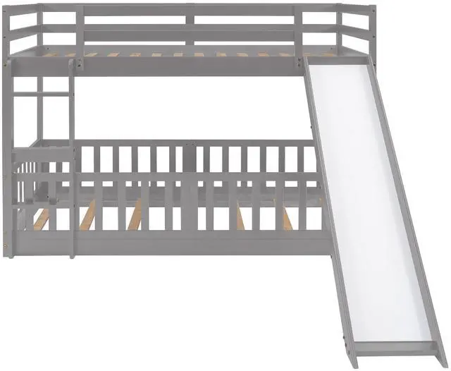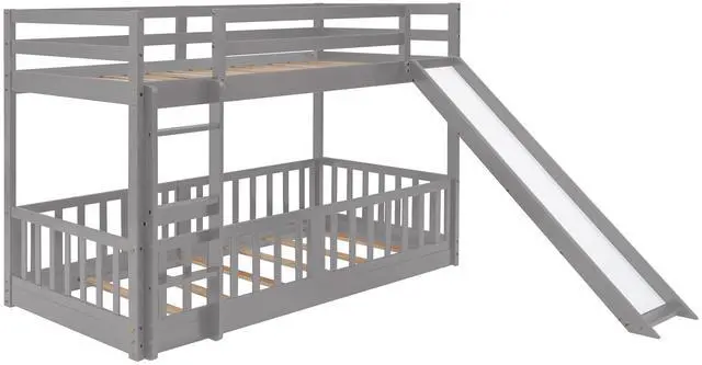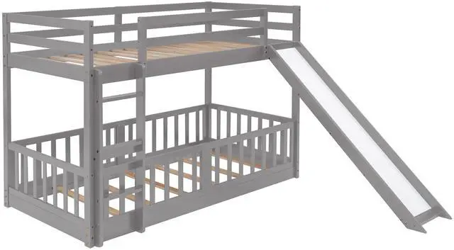 [Convertible Ladder and Slide] With built-in ladder, it is easy for you to climb up and down from the top bed. Featuring a low slide for you to play, this bunk bed can add fun to you and develop their sense of balance and coordination. The slide and the ladder are convertible, both of them can be put left or right. What's more, this bed has three different assembly methods, you the bottom guardrails and the bottom bed can be took off.
