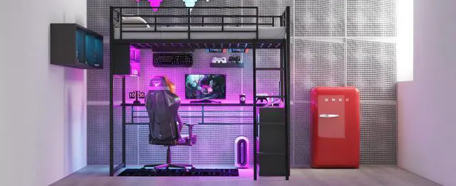 [Space-saving Design] There is a long desk and two 2-tier storage shelves under the bed for you to study or place daily supplies. Making full use of space, this bed will save much space, perfect for small room.