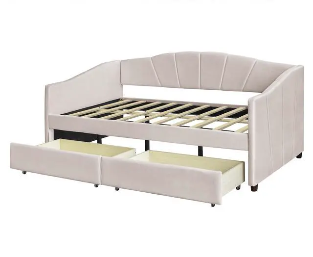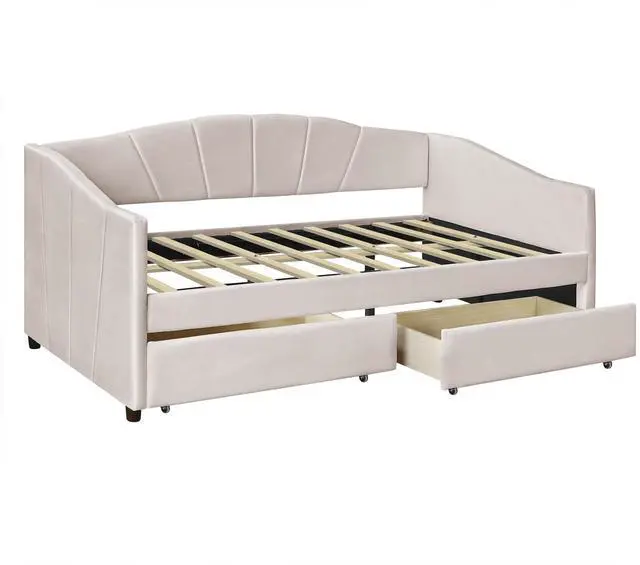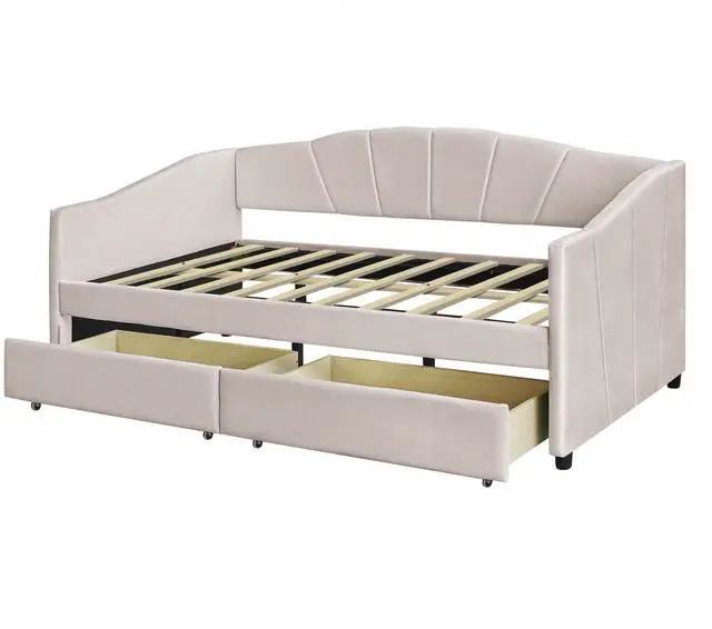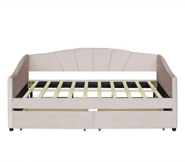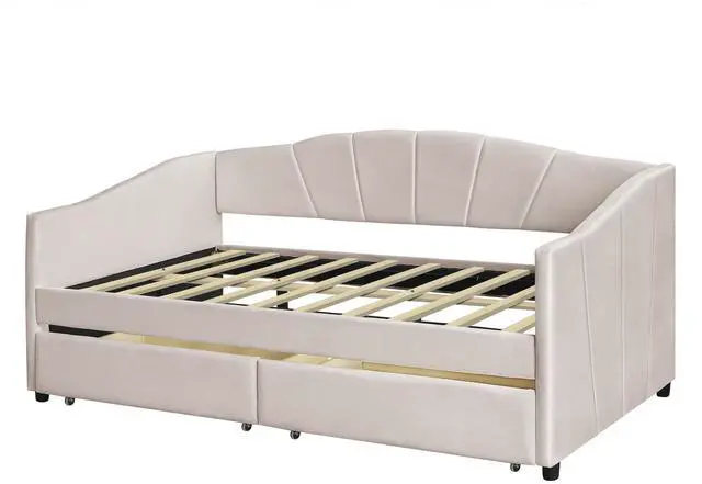 [No Box Spring needed] This daybed frame comes with sturdy wooden slats. Mattress is not included. A comfy velvet fabric backrest and two armrests that bring you and your family a cozy feeling.