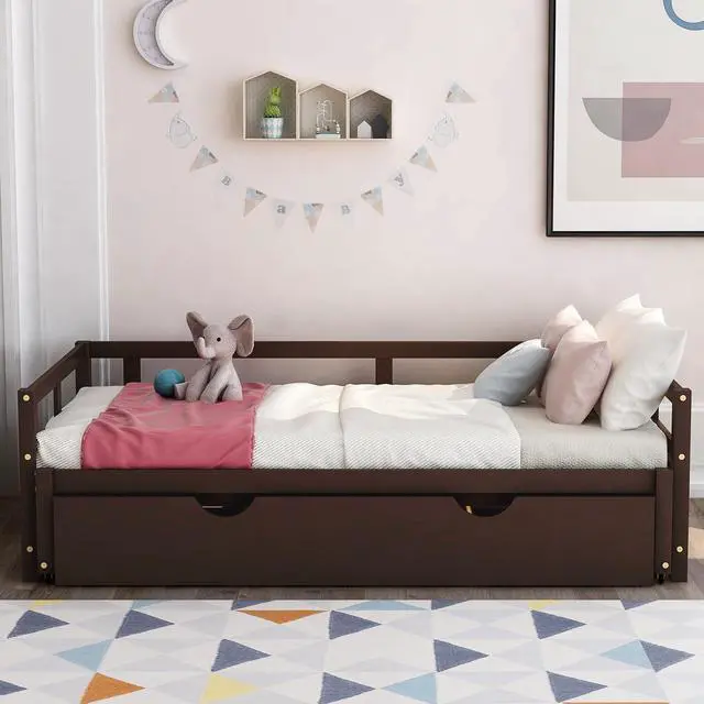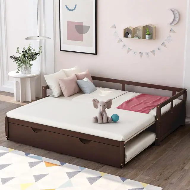 [Twin to King Design] When the trundle is pulled apart, this daybed can be expanded from twin size to King size. The twin size is suitable for children or daily use, but when the guests arrive, King size is the best choice.