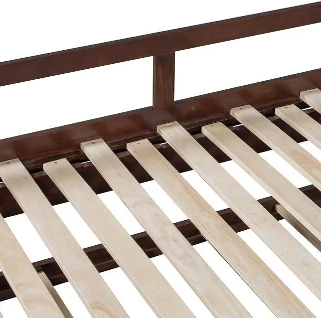 [Health and Comfort] No box spring required, and without needing a foundation. The simple yet elegant wood frame is sturdy and comes with wood slats for extra support and ensures air moves freely around your mattress to keep it fresh for years to come. Built-in smoothly casters, easy for you to pull out of the trundle bed.