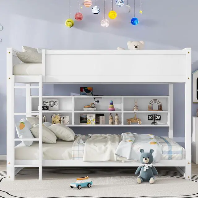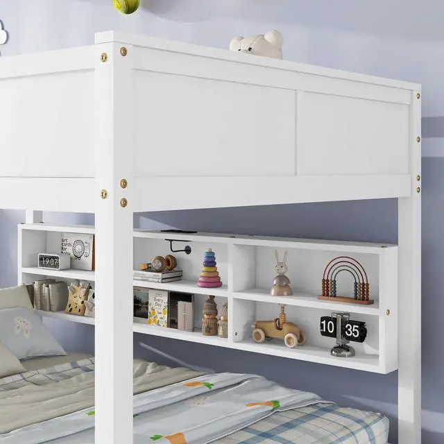 #2[Practical and Spacious Storage Cabinets]This wooden bunk bed is equipped with 6 built-in storage cabinets, providing an optimal solution for organizing bedding sets, book, toys and personal belongings, thereby maintaining a well-organized living space. It serves as a comprehensive furnishing solution.