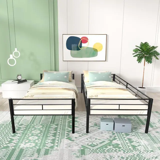 Space saving and Convertable: Having convenient built-in ladders on each side, this stylish bunk bed saves space for you. Without cumbersome spring box, the space under the lower bunk bed gives you extra store space. What's more? The bunk bed is convertible. Following just few simple steps, you will have separated twin beds when you need.