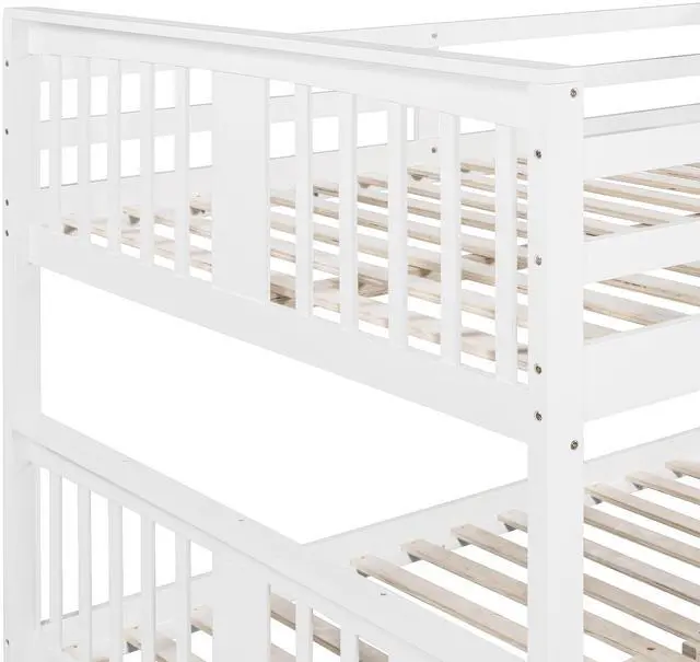 [Versatility galore] This bunk bed features one full size upper bed, one full size bottom bed for accommodating you or overnight sleepers. It can also be divided into two individual beds for even more convenience, depending on how you want to organize your space. No spring box needed.