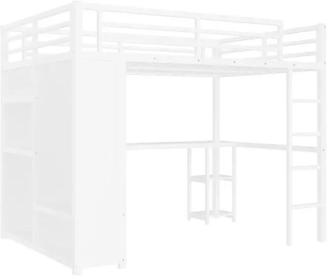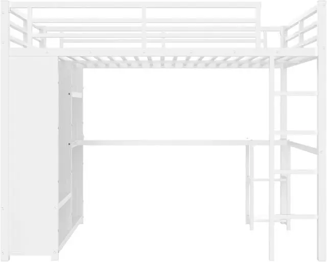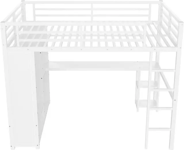 [Workstation and Storage] The bed comes with a desk that can be used for studying or working. The storage shelves next to the desk can hold most of the items you need for work or leisure.