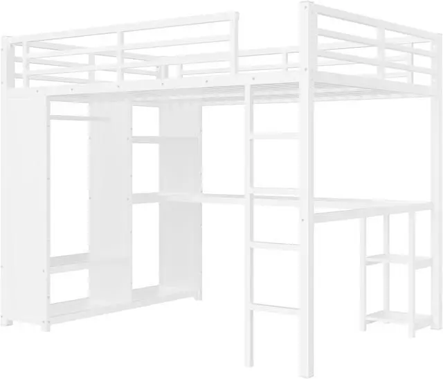 [Space-saving Design] There is a desk, wardrobe and storage shelves under the bed for you to study or place daily supplies. Making full use of space, this bed will save much space, perfect for small rooms.