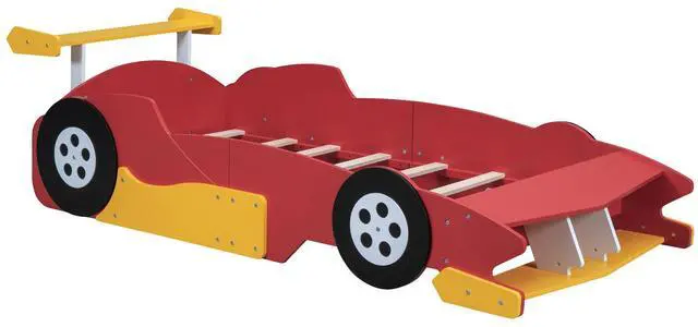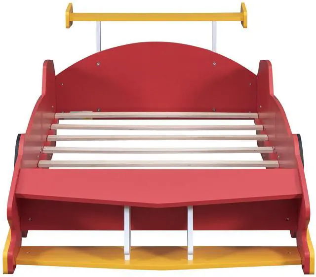 [Unique design] This bed with an appealing race car design and solid construction will be a real eye-catcher in your bedroom. This bed has 2 sizes and 3 colors. There's always one matches your bedroom.