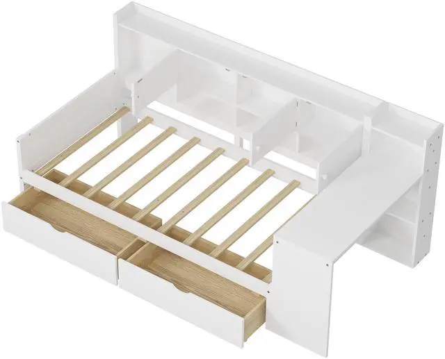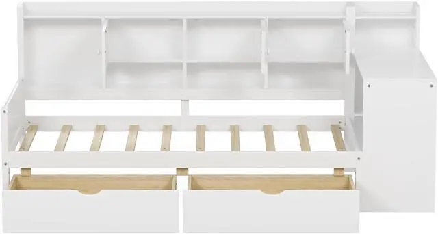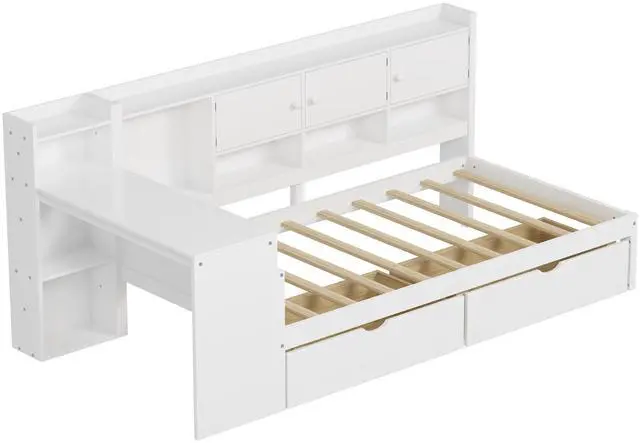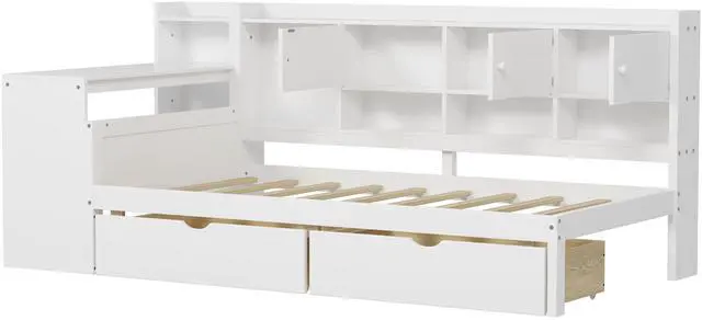 Abundant and Thoughtful Storage Solutions: Featuring seven storage cabinets on the side and two large pull-out drawers beneath the bed, this bed offers ample space to store books, clothes, toys, bedding, and more. The well-organized storage design keeps essentials within easy reach, making it perfect for optimizing smaller living spaces