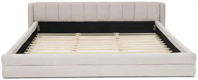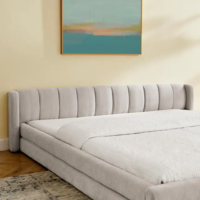 [Unique Grounded King Size Bed] - This grounded upholstered bed will be both a beautiful piece in the room and a place full of fun for your family. This beautiful modern King bed frame adds a contemporary chic look to your bedroom and is upholstered in thick chenille fabric to add extra comfort.