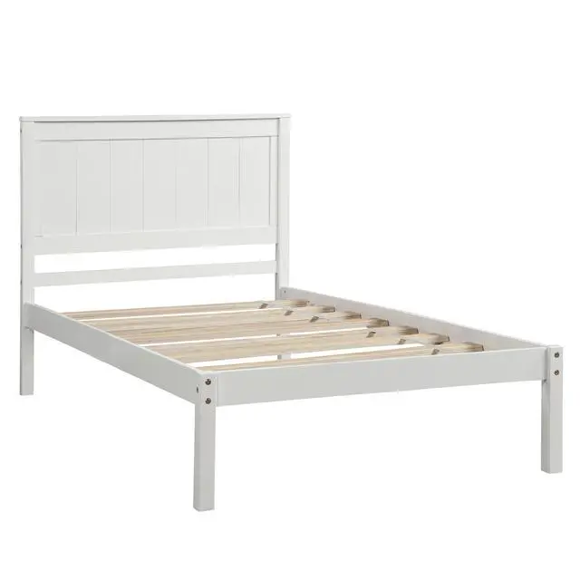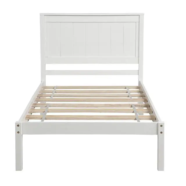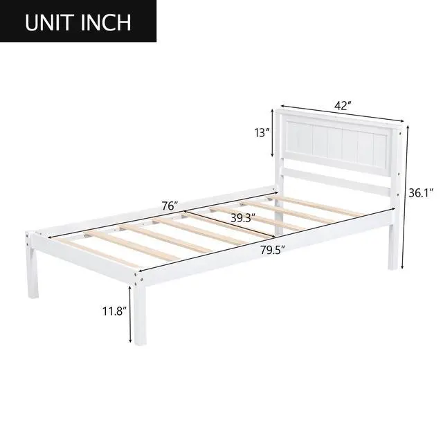 Platform Bed Frame with Headboard, Wood Slat Support, No Box Spring Needed,Twin, White(OLD SKU:WF191418AAK)