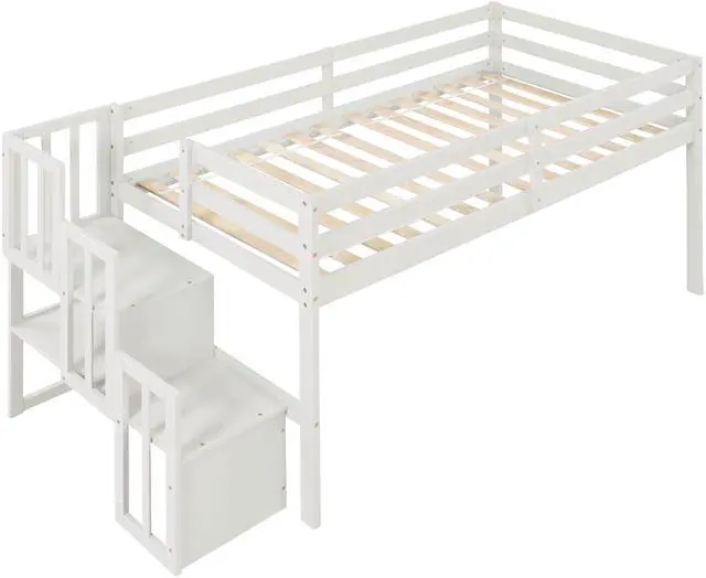 Staircase The loft bed features sturdy staircase with handrails that guides and ensures the safety of the child. This is a convenient feature that is especially useful for younger kids who is unable to climb up a ladder, making the trip to the loft bed easier.
