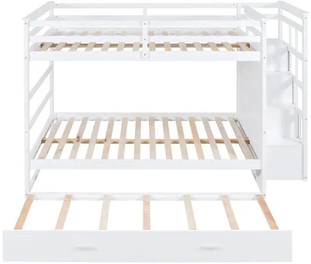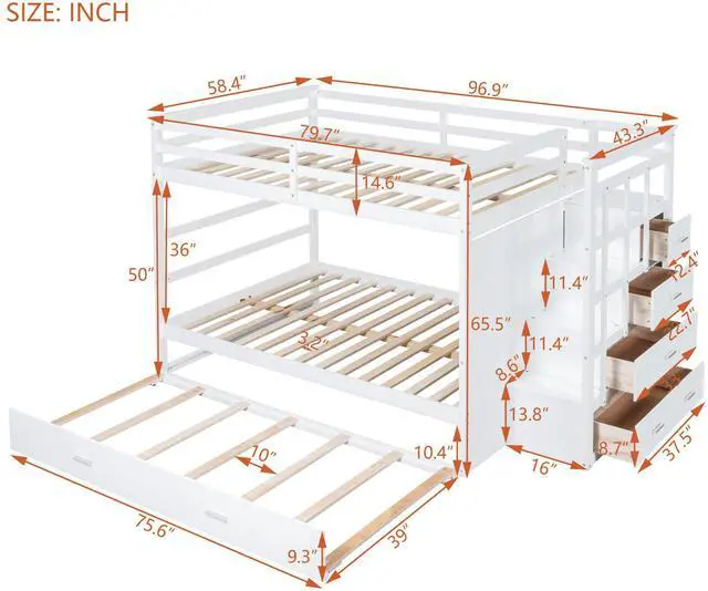 [Bunk Bed with Storage Drawers ] Multifunction staircase instead of ladder. Easy access to the upper bed, safe and sturdy climbing for your family. 4 storage drawers for you to store your familys' staff, super organized bunk bed to families' ultimate demands.