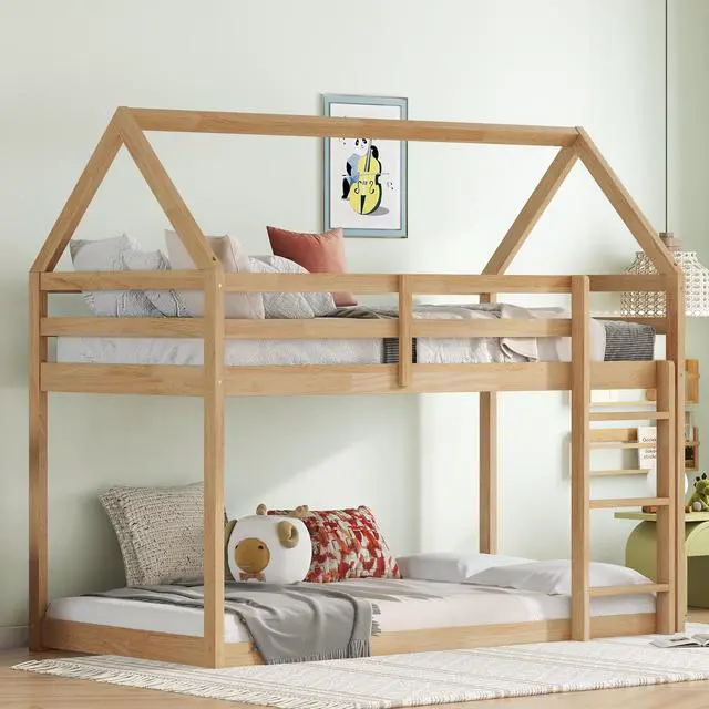 #1 [Wood House Roof Bunk Bed]The unique style of wood house bed with house roof design provides kids with endless imagination and access to the natural woods, while they go to bed and fall asleep. This bed not only gives them a lot of fun, but also enhances their imagination and creation.