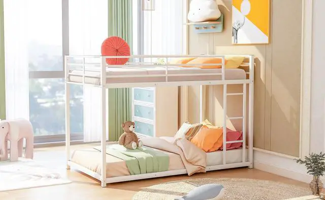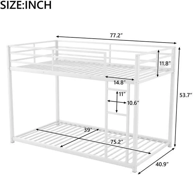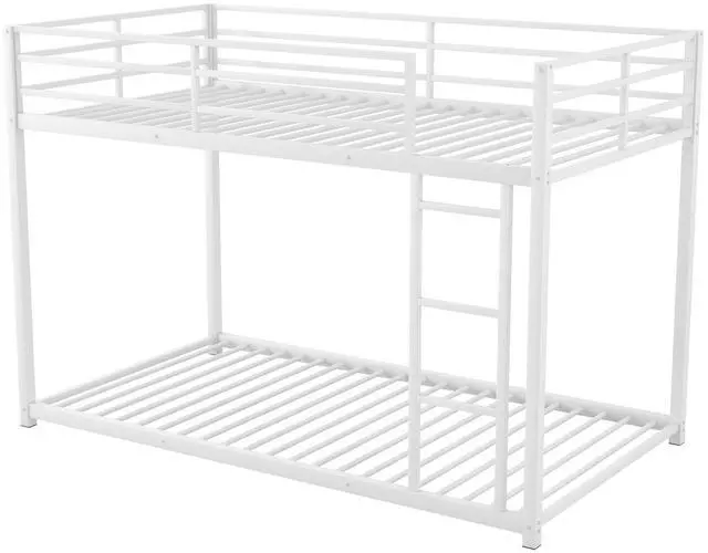 Twin over Twin Metal Bunk Bed, Low Bunk Bed with Ladder,White(OLD SKU:MF197033AAK)