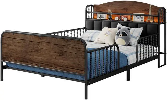 All-Round Safety Guardrails: Full-length protective rails around kids full bed, creating a secure sleep space that prevents nighttime tumbles. The openning of the side rails can be placed on both right and left guardrails for meet different room design.