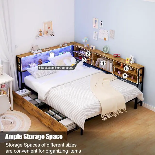 5. Sturdy Construction with Easy AssemblyCrafted from durable materials for long-lasting support and stability, this corner bed frame is designed for everyday use by teens and adults. Clear instructions and labeled parts ensure a smooth and hassle-free assembly experience.