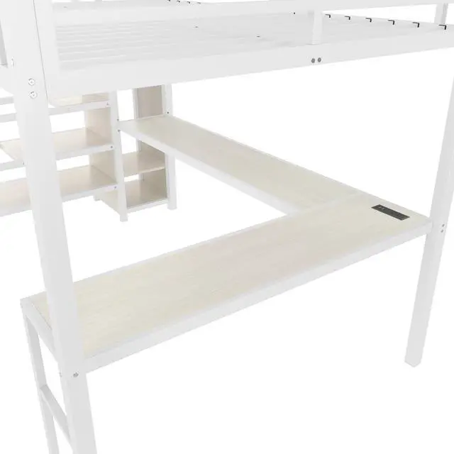 Loft Bed with USB and LED - The queen size bed's desk comes with a USB charging station for charging electronics that is convenience to your daily life. The LED light strip adds a sense of ambiance to your room while making it easy for you to wake up at night.