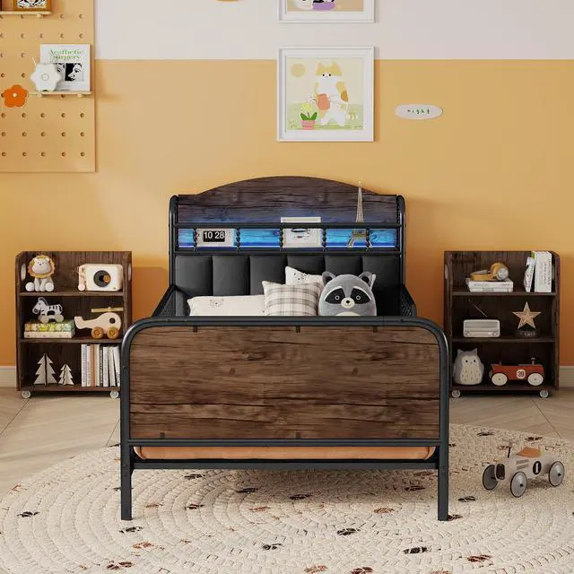 Twin Bed with LED Strip: Equipped with LED light strips. The LED lights with 60, 000 colors to change color and brightness and set up all kinds of fancy flash mode. You can switch colors by controller or mobile APP.