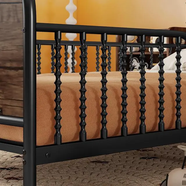 The twin kids bed constructed of metal frame. Feature 21 pcs slats which provides you with strong support for a relaxing sleep. The powder-coated surface features medium rust and scratch resistance for long term use.
