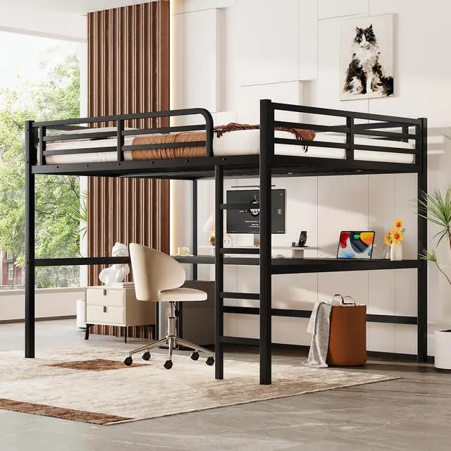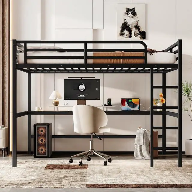 [Sturdy Metal Frame] Made of solid metal frame, the loft bed is durable and reliable for you bedroom. All four sides of the upper bed are equipped with protective guardrails to prevent little ones from accidental falls to keep them safe and secure during play or sleep.