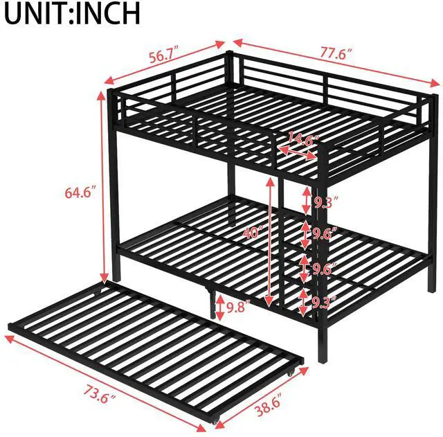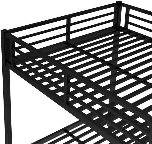 Safety Design: Our Full over Full bunk bed has 40 metal slats that has strong supporting force. Bottom bed with thicker legs for reinforcement. The guardrail around the upper bed which enhance safety and prevent accidental.