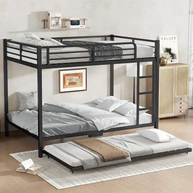 Solid construction: Made by strong and heavy duty metal provides durability and strong structure make the bunk bed more stable. The bunk bed adopts durable electrostatic powder coating, environmental protection, non-toxic and pollution-free, not easy to fade, the use cycle is long, and easy to clean.