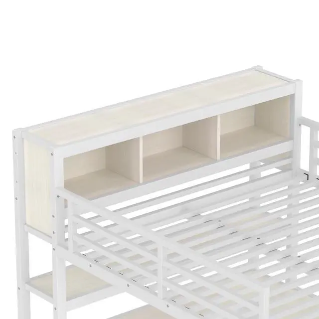 Space Saving: This metal bunk loft bed with wardrobedesk and storage shelves is designed for rooms with limited floor space. It's the perfect addition for growing teens, giving them the freedom to rest and entertain!