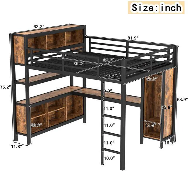 Space Saving: This metal bunk loft bed with wardrobedesk and storage shelves is designed for rooms with limited floor space. It's the perfect addition for growing teens, giving them the freedom to rest and entertain!