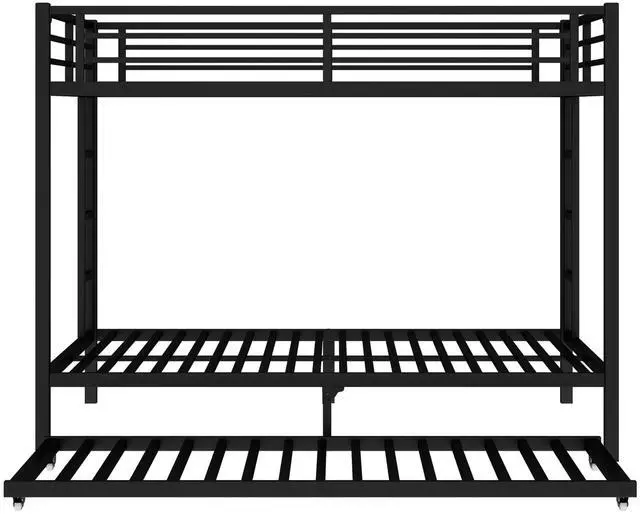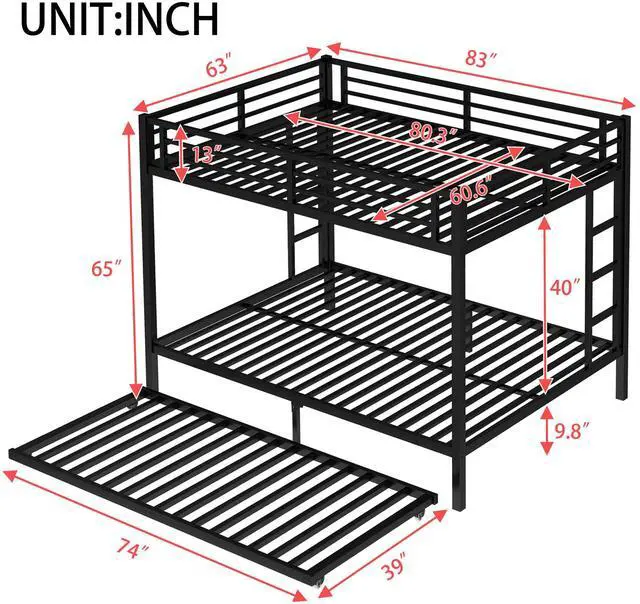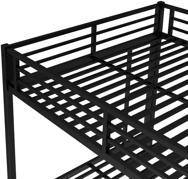 Safety Design: Our Queen over Queen bunk bed has 40 metal slats that has strong supporting force. Bottom bed with thicker legs for reinforcement. The guardrail around the upper bed which enhance safety and prevent accidental.