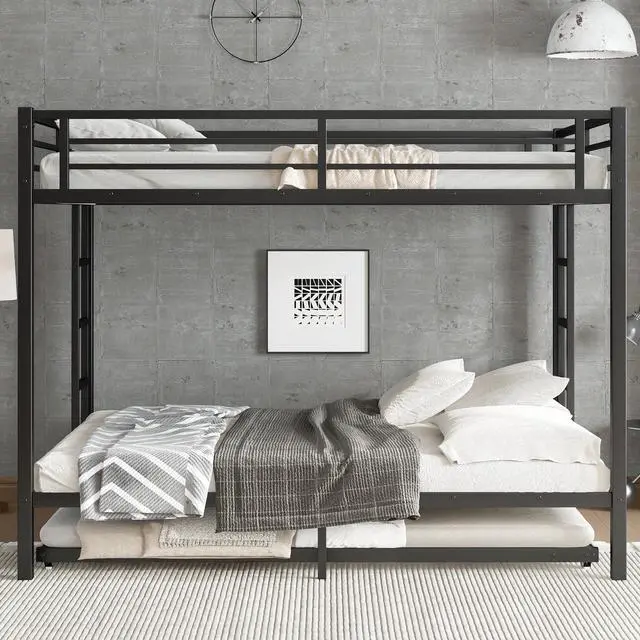 Solid construction: Made by strong and heavy duty metal provides durability and strong structure make the bunk bed more stable. The bunk bed adopts durable electrostatic powder coating, environmental protection, non-toxic and pollution-free, not easy to fade, the use cycle is long, and easy to clean.