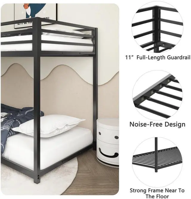 Square Metal Bunk Bed Frame]: This Twin over Twin metal bunk bed features timeless styling and durability that will last for years. Suitable for any area such as children's bedrooms, universities, vacation rentals, and institutions. A perfect metal bunk bed for kids, teens, girls, boys, and adults.