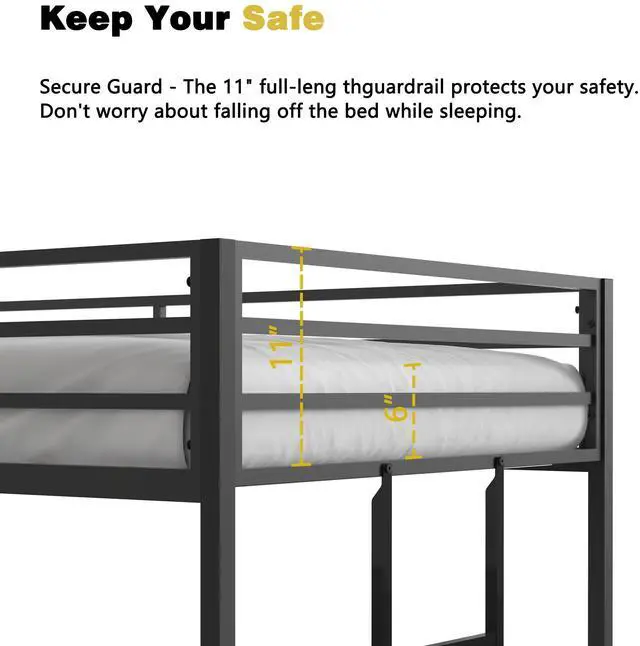 [Designed for Safety]: The top bunk has reinforced guardrails to prevent falls. A convenient ladder with comfortable steps makes it safe and easy to climb up and down.