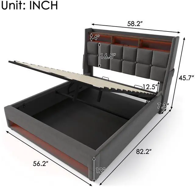 Colorful LED Lighting: LED lighting at the head and foot of the bed adds modern style to your bedroom, and the remote control lets you change the different colors and brightness for a comfortable night's sleep.