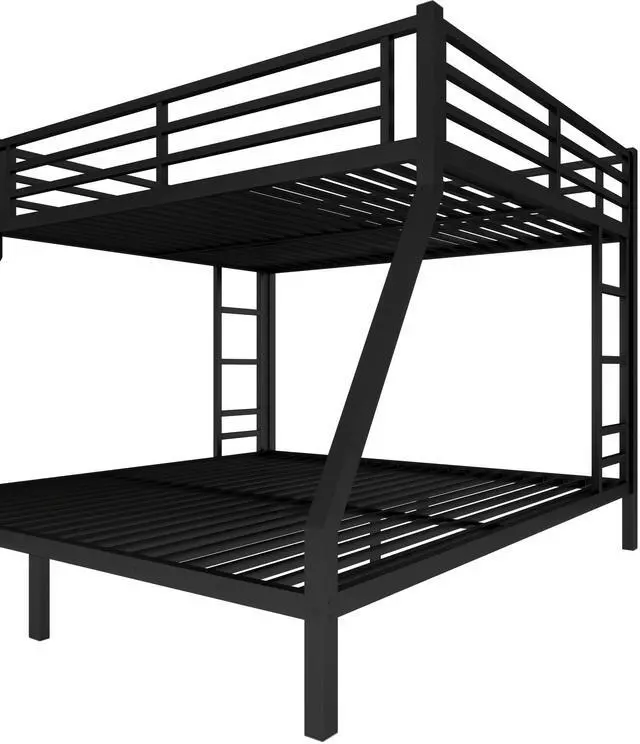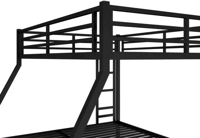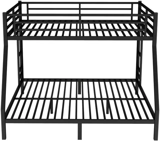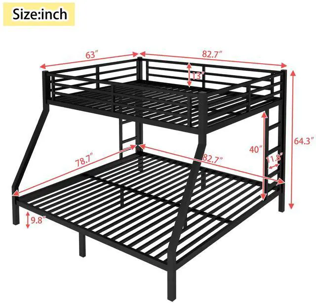 Safety Design: Our Queen over King bunk bed has 40 metal slats that has strong supporting force. Bottom bed with thicker legs for reinforcement. The guardrail around the upper bed which enhance safety and prevent accidental.