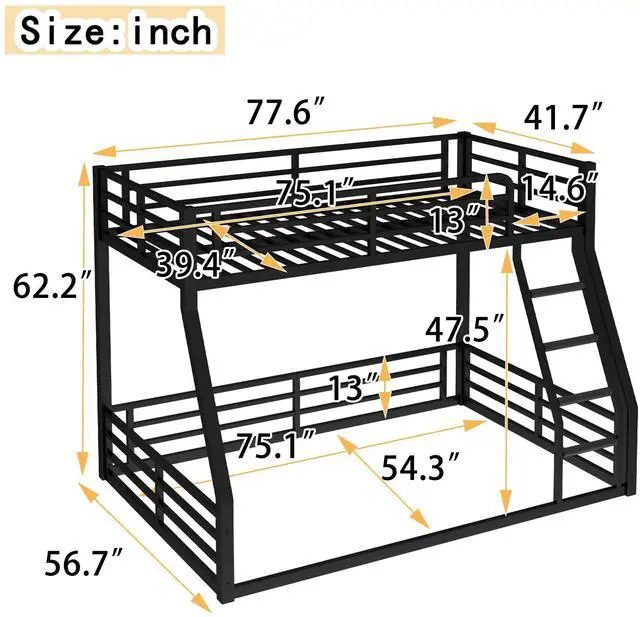 Sleek, Minimalist Style Fits Any DécorWith clean lines and a matte black finish, this twin full metal bunk bed blends effortlessly with a variety of furniture styles from modern and industrial to traditional. A timeless, versatile choice for kids, teens, or guest rooms.