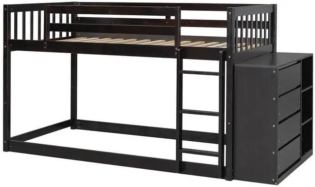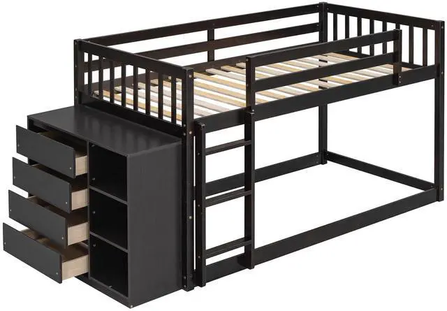 [Maximized space] The bunk bed takes up minimal space for the spontaneous sleepover guest. Even better, four drawers and three shelves offer stowaway space for clothes and bedtime stories. Functional and aesthetic, this bunk bed will enhance any bedroom.