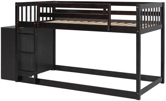 [Solid Construction] This multi-functional bunk bed is crafted from a solid pine wood frame, with commercial grade MDF board for quality control and durability. The stable ladder can be assembled on either side of the bed which is great for tricky rooms where space is a concern. Guardrails are solidly attached for added safety.