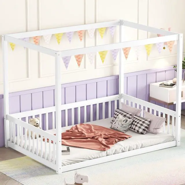 #2 [Floor Bed with Guardrails Design]This floor bed featuring fence of guardrails not only ensures better stability but also reduce safety concerns, offering the restful nights of sound sleep. The solid and secured bed fence guardrails will match a standard mattress on the floor.