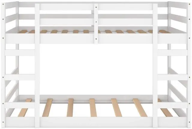 v [Solid Construction] This muti-functional bunk bed is crafted from a solid pine wood frame, with commercial grade MDF board for quality control and durability. Guardrails are solidly attached for added safety.