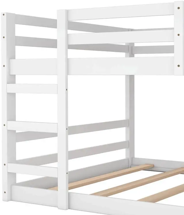 v [Designed for your safety] The upper loft bed features a full-length guardrail. This bunk bed ensures top-notch security for you. What's more, the solid legs that made of solid pine wood can add strength and durability.