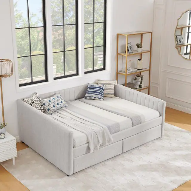 [Smart Storage Solutions] Designed with 2 storage drawers. This daybed offers ample storage space to keep your belongings organized and within reach. Say goodbye to clutter and hello to a tidy bedroom environment.