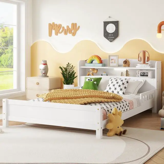 #5 [Easy Assembly]This full bed with bookcase and LED motion sensor light is delivered in one package, along with the manual and full set of hardware necessary to guide you through the process of assembly, and the bed will definitely be assembled conveniently.