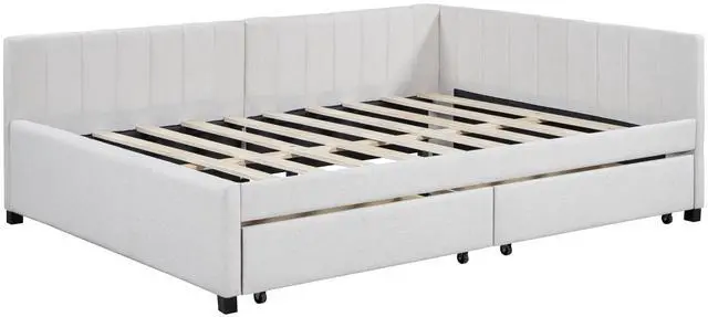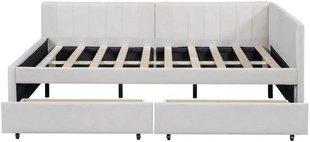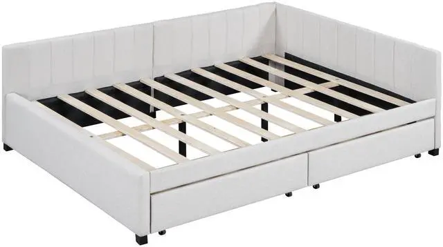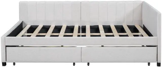 [Classic Design] This classic design day bed adopts a semi-closed design concept, linen fabric is dirt-resistant and wear-resistant, and equipped with two movable drawers, which is functional and beautiful.