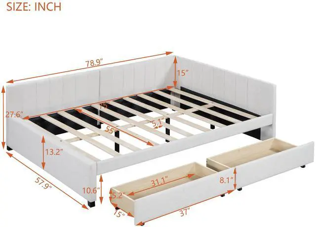 [Maximized space]The sofa bed with 2 big drawers can easily be pulled in and out for maximum storage space, perfect for organizing anything from clothes and bed linens to toys and games. Such a versatile piece, bringing functionality, versatility, and style to your home, perfect for those who have lots of visitors.