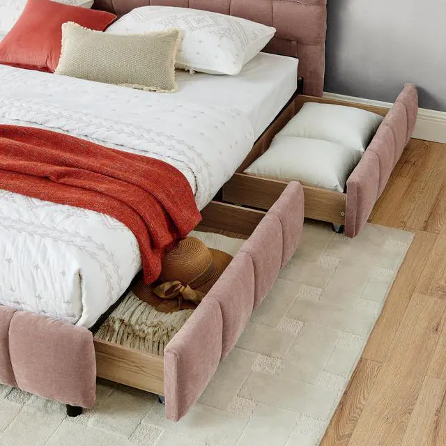 [Easy to store] - This bed is equipped with drawers, and this design with rollers makes it easier to reach for items. There is no need to bend over to reach things deep under the bed. Just gently pull the drawer, and the required items can be immediately presented. This design makes full use of the space under the bed, making the bedroom clean and orderly, saying goodbye to clutter.