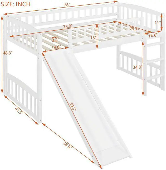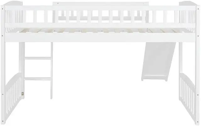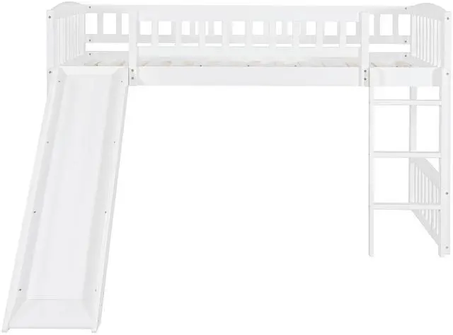 v [Versatility galore] The space underneath the twin size loft bed is a good place for you to read or play and create their own world to be explored. Coming with slide, the loft bed brings fun.